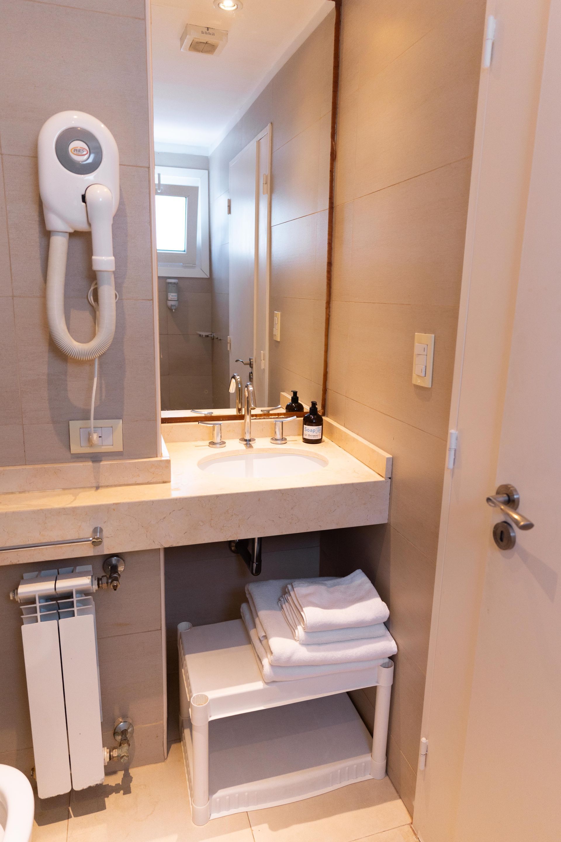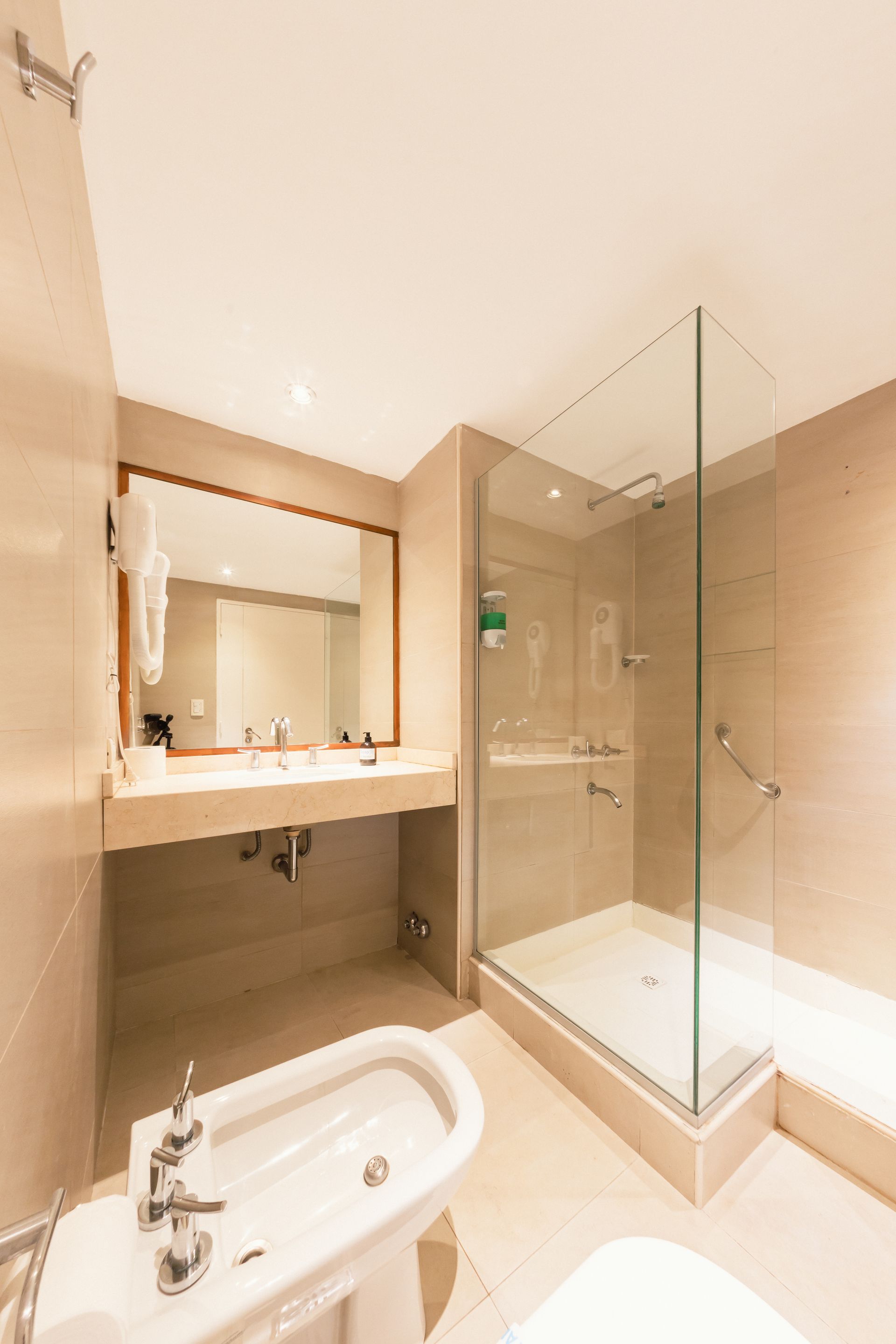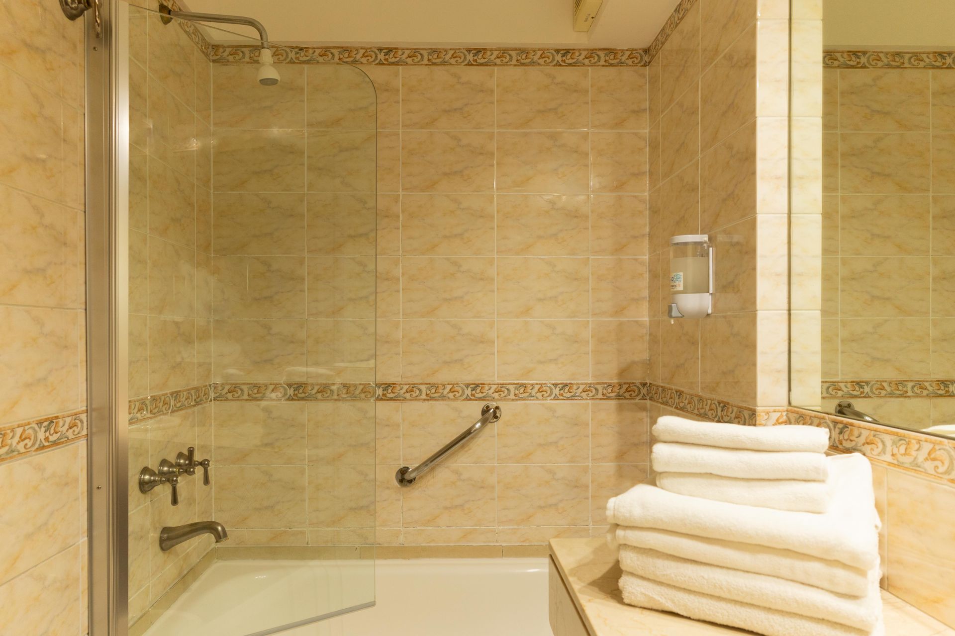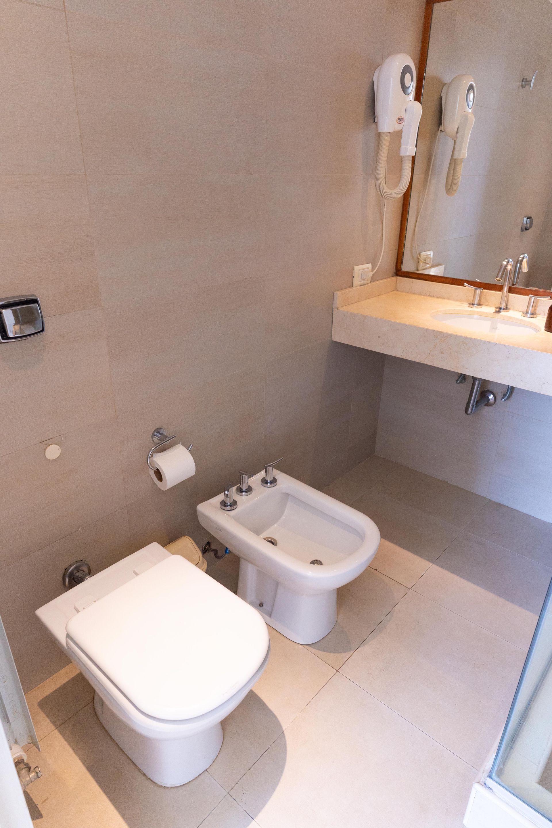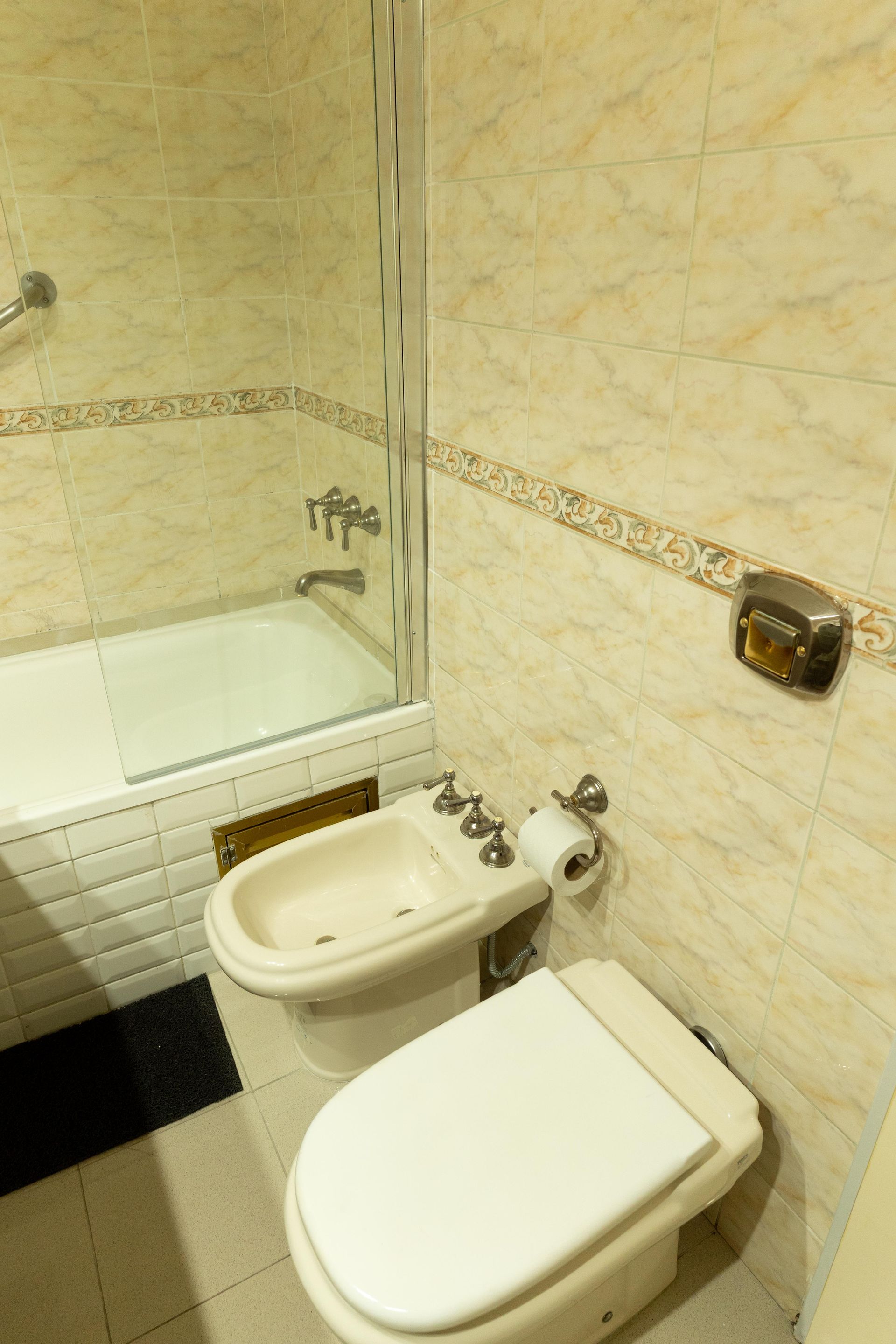 - Full bathroom with bathtub, swing-type movable screen and hair dryer