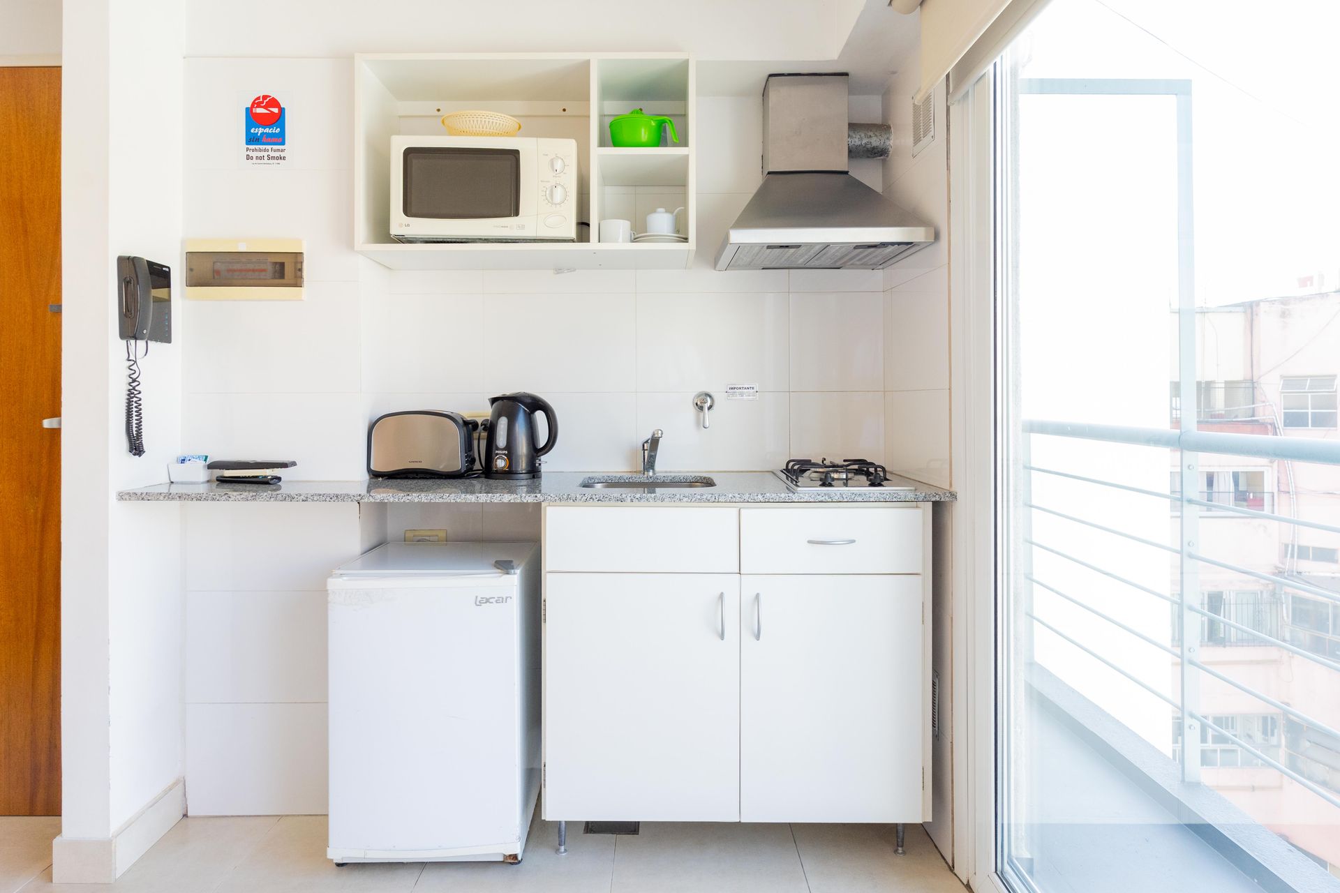 Comfortable and functional, this studio apartment facing the rear is ideal for those seeking practicality in a well-utilized space.