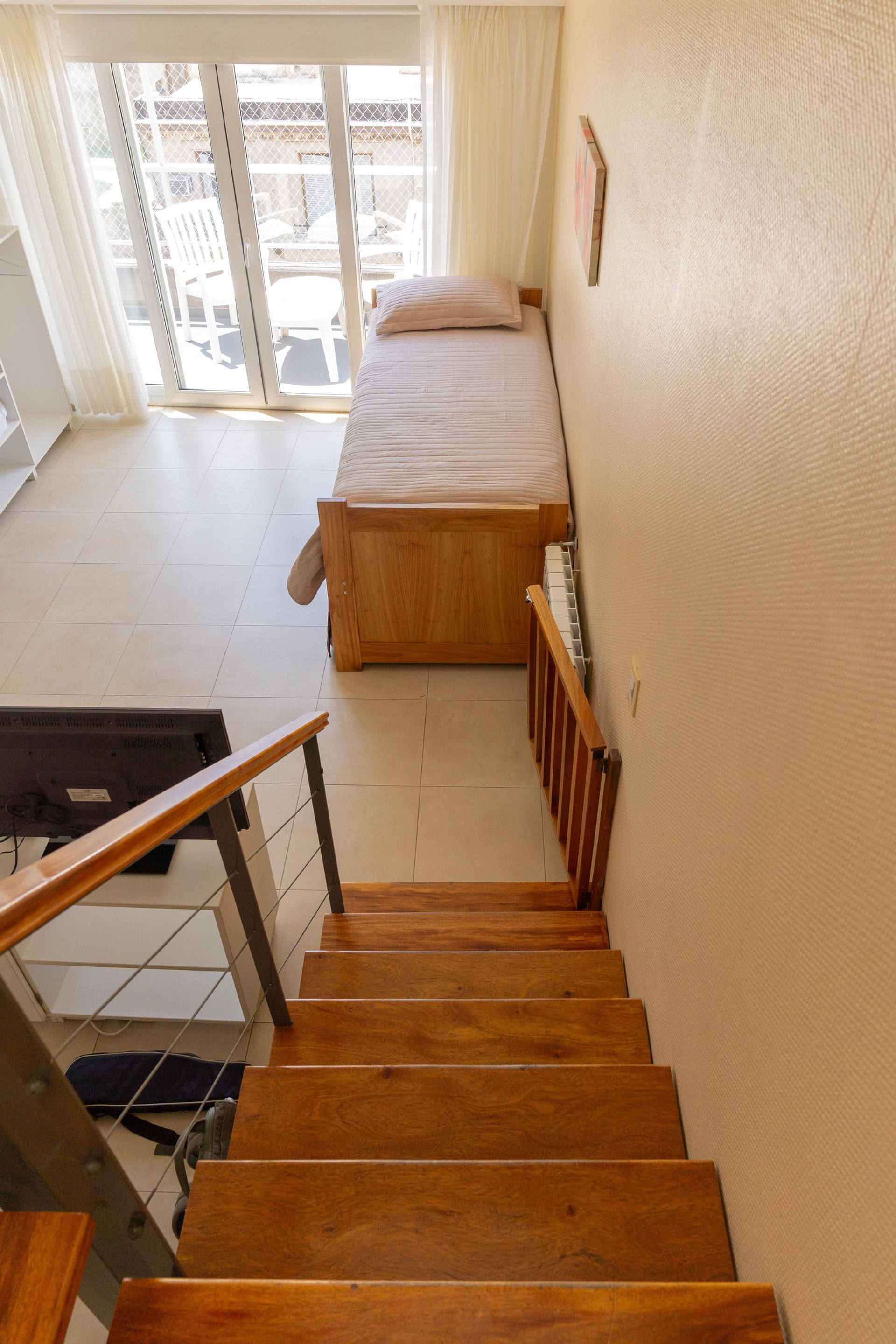 This comfortable 50 m² duplex is distributed between the 7th and 8th floors of the building, with views of the rear and a balcony on each level, ideal for enjoying greater privacy and light.